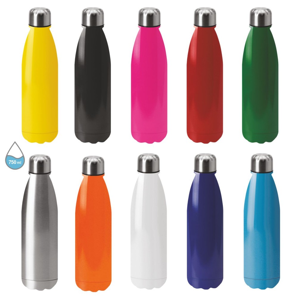 BORRACCIA IN ACCIAIO INOX CON PERSONALIZZAZIONE LOGO UV A COLORI.