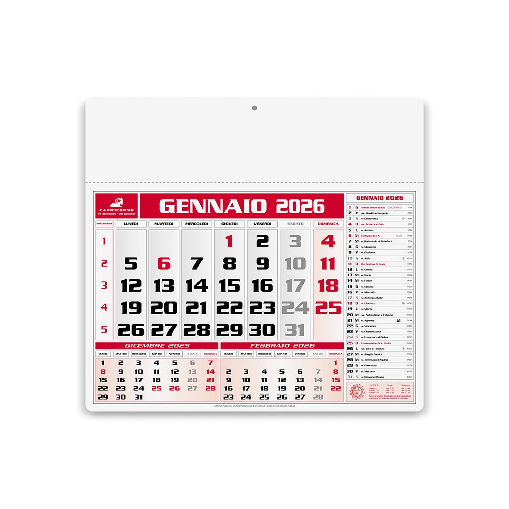 • Calendario Americano Trimestrale 12 fogli, carta patinata, testata pressofusa.